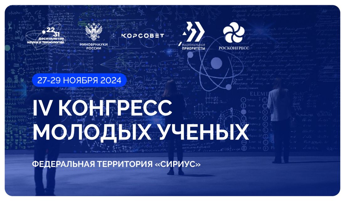27–29 ноября на федеральной территории «Сириус» пройдет IV Конгресс молодых ученых. Главная тема — «Приоритеты научно-технологического развития: создаем будущее сегодня».