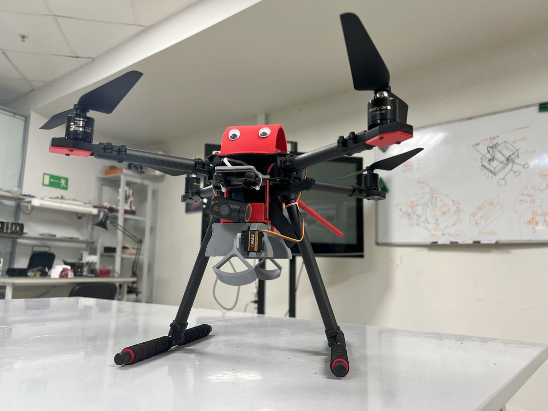 Беспилотник был оснащен автоматической системой взлета, следования к точке сброса и возвращения на исходную позицию, что позволило ему выполнять миссию без участия оператора, а сам сброс груза осуществлялся по команде человека. Кроме того, аппарат способен висеть в воздухе с грузом около часа, а поворотная камера на нем позволяет прицеливаться и точно сбрасывать груз.