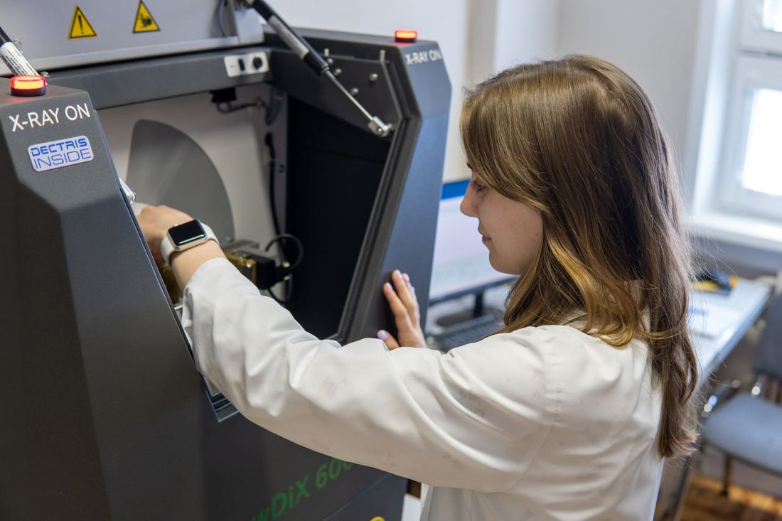 «“Дышащие” кристаллы, как класс соединений, были получены академиком В. И. Овчаренко в начале этого века в Международном томографическом центре (МТЦ) СО РАН. Их уникальное свойство — способность значительно менять объём под воздействием изменения параметров окружающей среды, таких как температура, давление или облучение светом, а потом снова восстанавливать его», — рассказала аспирантка физического факультета НГУ Кристина Смирнова.