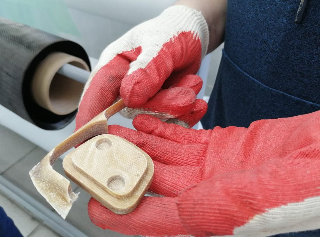 Сотрудники Научно-исследовательской лаборатории ремонта и диагностики композиционных материалов ИРНИТУ провели серию экспериментов с составами полимерного связующего и армирующего наполнителя для производства стеклопластиковых губок и отработали рецептуру композиционного материала из 70 слоев стеклоткани. Также были подобраны технологии резания, чтобы придать губкам необходимую форму.