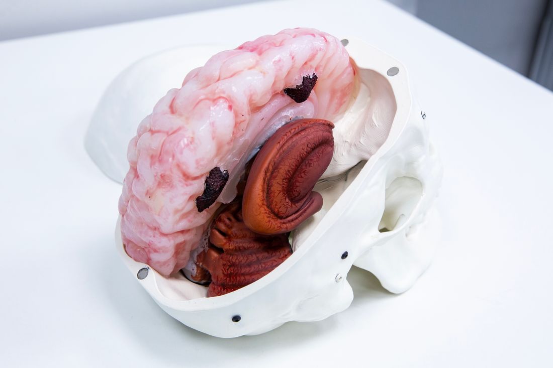 Манекен представляет собой комплекс из моделей черепа и правого полушария мозга с визуализированным показанием к операции. Основа манекена — снимок КТ реального пациента. В Центре серийного производства СамГМУ модель черепа отпечатали на 3D-принтере из АБС-пластика и покрыли акриловой смолой, а полушарие изготовили из силикона. Есть также несколько вариантов модели: например, “Мозг” с доступом для взятия биопсии.