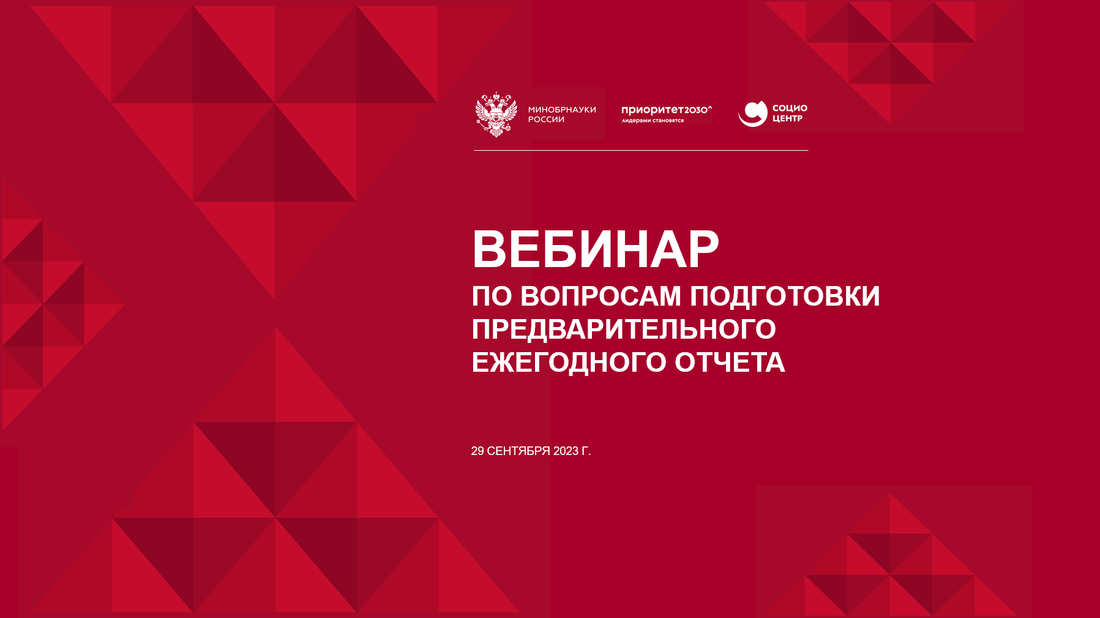 Презентация вебинара по вопросам подготовки предварительного ежегодного отчёта доступна для скачивания по ссылке: https://priority2030.ru/upload/iblock/2ed/6w3m19o3k9gtrgykn3e2m4itae8o34on/29_09_VEBINAR_oktyabr.pdf