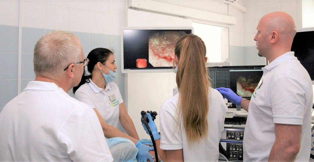 Проведение исследования врачами-эндоскопистами, на котором алгоритм искусственного интеллекта отмечает патологии в режиме онлайн