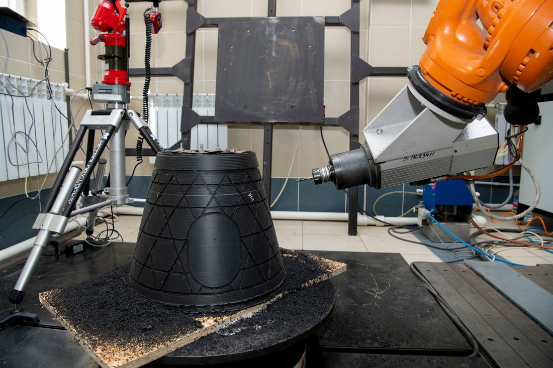 Разработка технологии по созданию сетчатых конструкций с помощью роботизированного аддитивного производства с применением отечественных материалов и оборудования ведется в КНИТУ-КАИ по стратегическому проекту «Инновационные композитные конструкции, материалы и технологии», поддержанному грантом программы Минобрнауки России «Приоритет 2030» (нацпроект «Наука и университеты»).