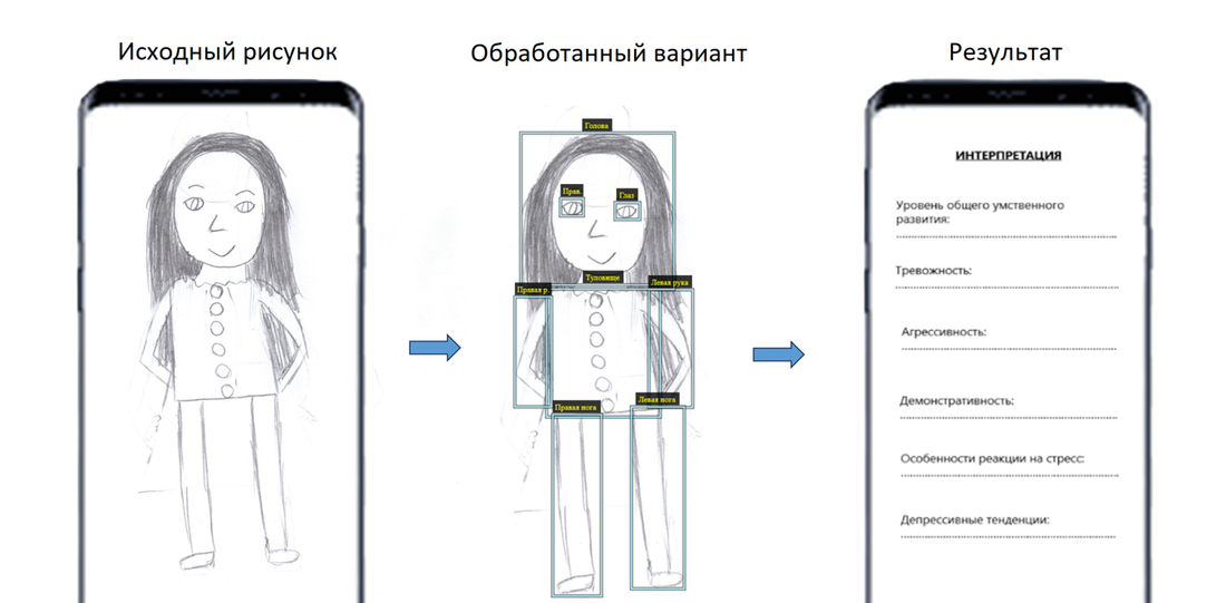 На основе теста «Рисунок человека» ученые создали прототип нейросетевого программного комплекса в формате мобильного приложения. В ходе исследования ребенка просят нарисовать человека на листе бумаги простым карандашом. Затем психолог на основе анализа особенностей рисунка делает выводы об индивидуальных чертах личности ребенка и планирует дальнейшую диагностику.